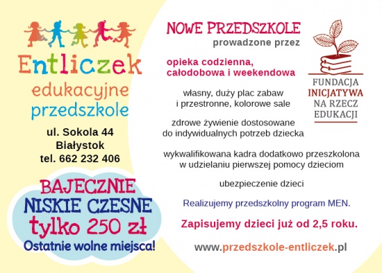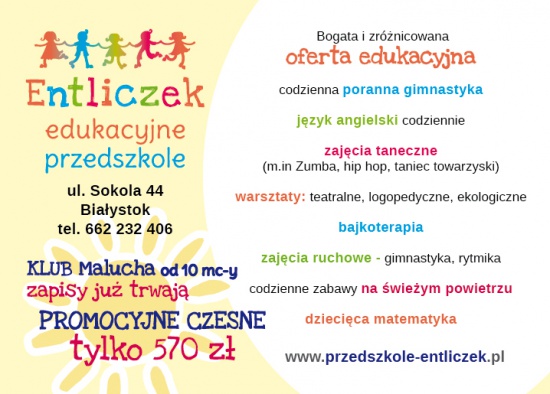 Zapraszamy dzieci od 2, 5 roku do 5 lat